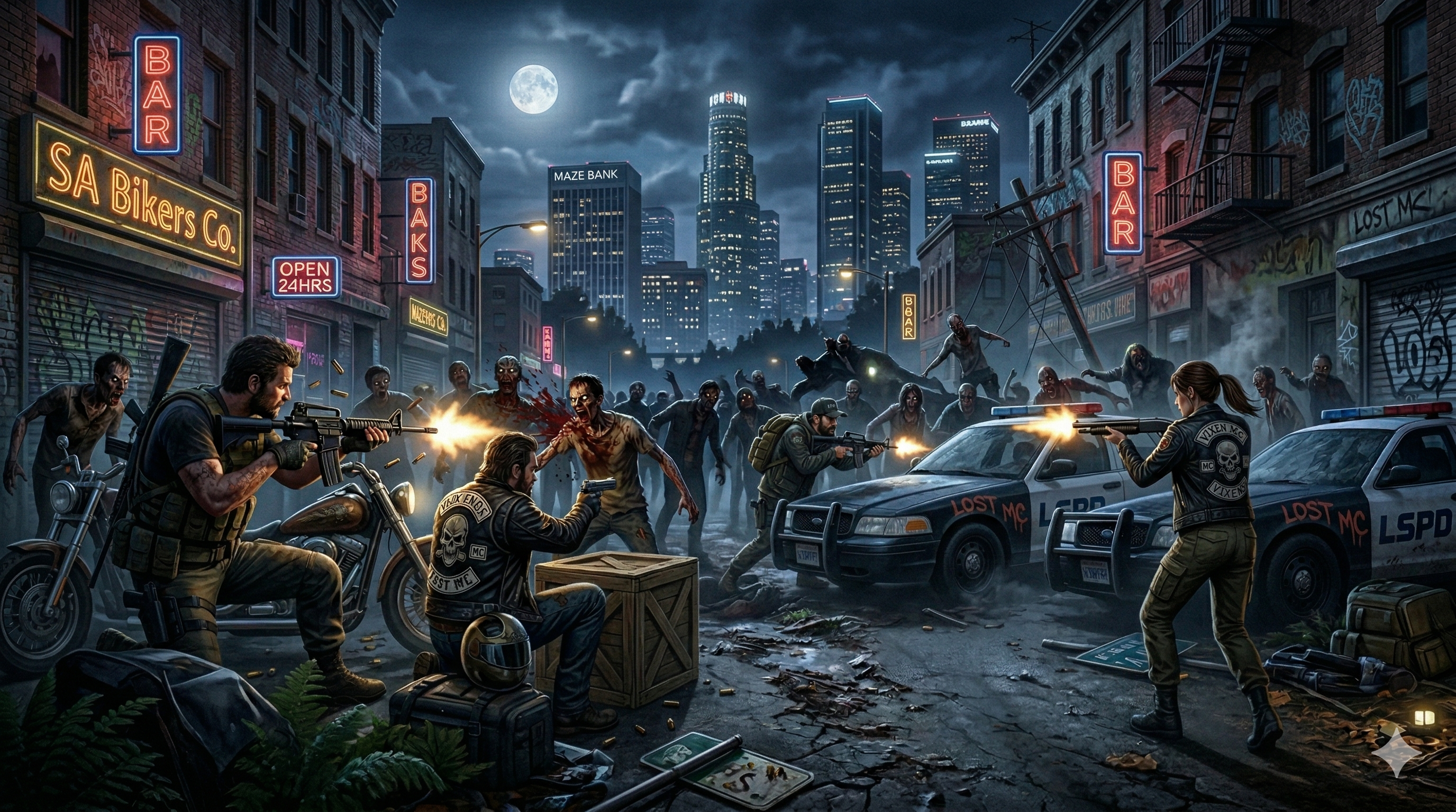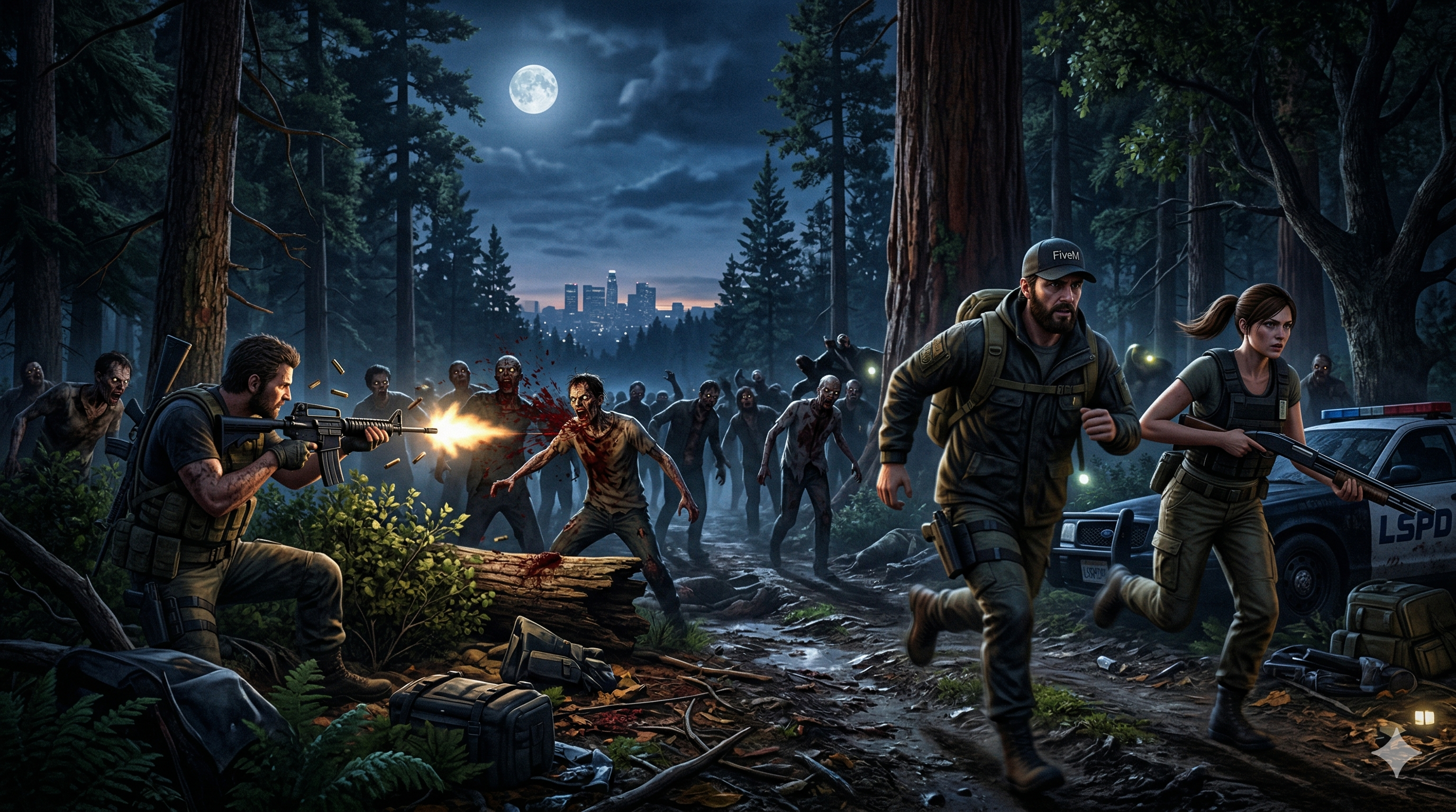 Servidor de roleplay zombie en FiveM con mecánicas únicas de supervivencia, crafteo y facciones.